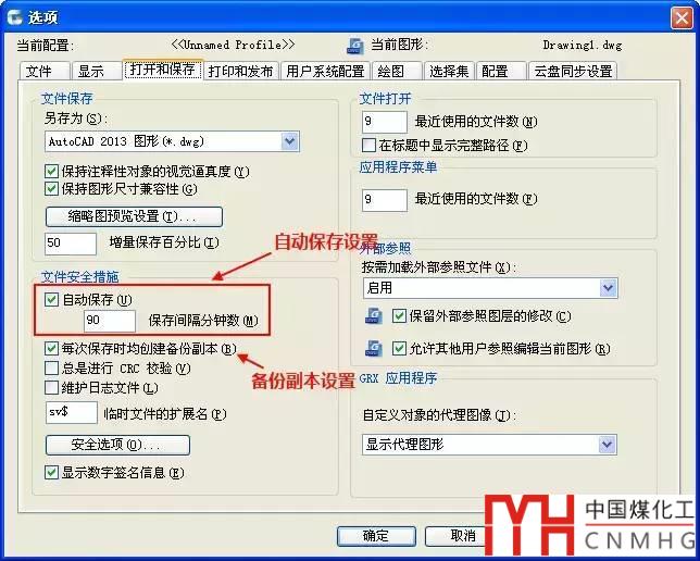 備份副本和自動保存文件是否生成和自動保存的時間間隔在選項(OP)對話框是可以設(shè)置的,如下圖所示。