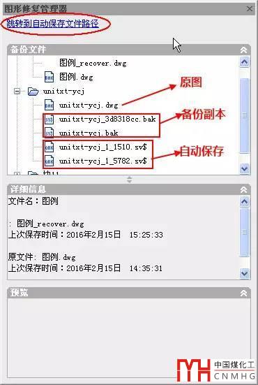 在CAD中通常都提供了“圖形修復(fù)管理器”(菜單:文件》繪圖實用程序》圖形修復(fù)管理器),如果CAD異常退出了,下次啟動時通常會自動打開圖形修改管理。圖形修復(fù)管理器會自動檢索備份文件和自動保存文件,在列表中找到要恢復(fù)的備份文件,雙擊就可以直接打開,更為簡單方便,如下圖所示。