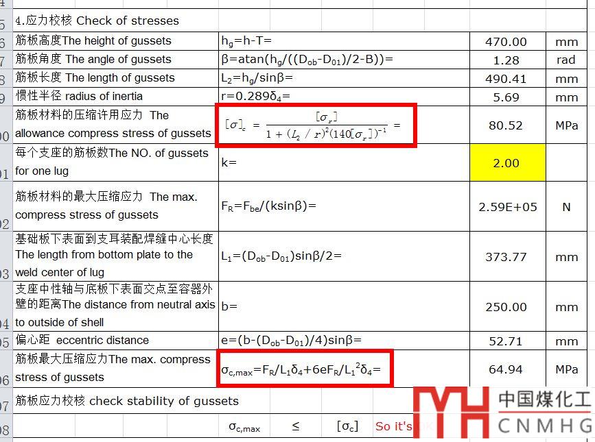 其中W=設(shè)備重,D=危險(xiǎn)截面直徑,t=為大環(huán)板的厚度
