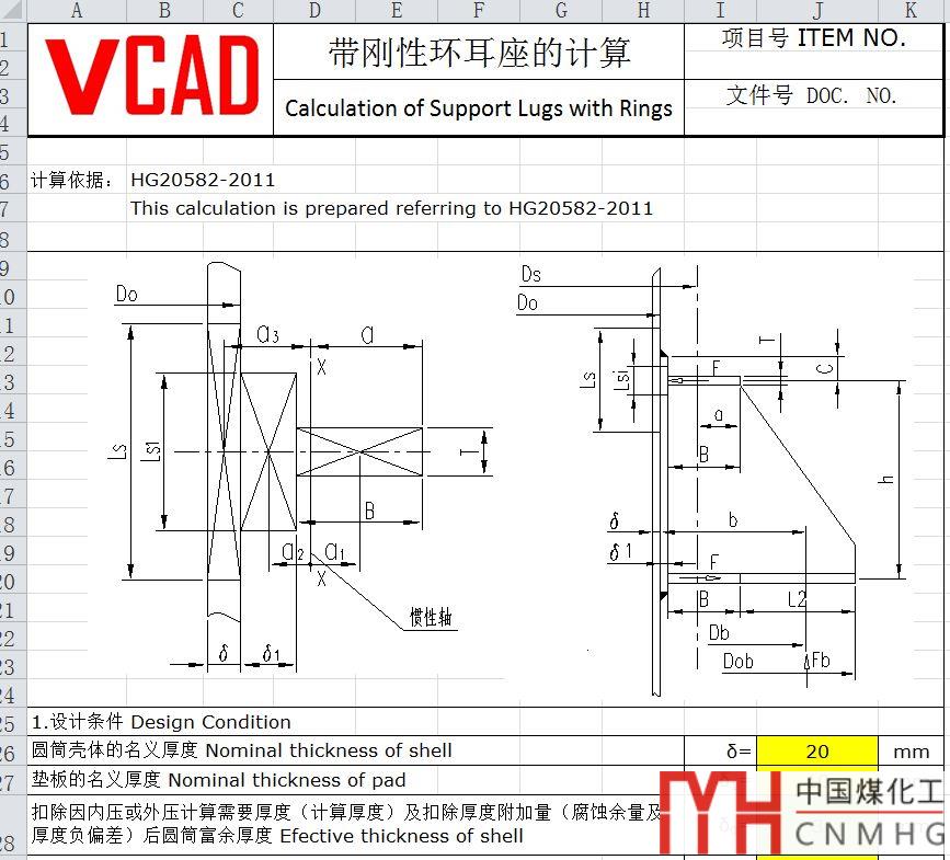 常規(guī)的剛性環(huán)耳座計(jì)算主要分為兩部分,剛性環(huán)和筋板的計(jì)算。