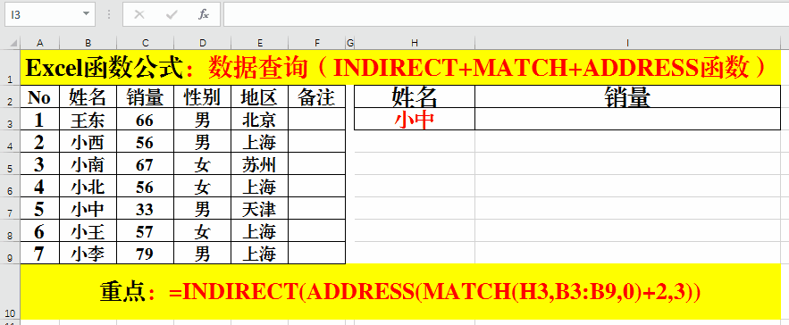 六、INDIRECT+MATCH+ADDRESS函數法。