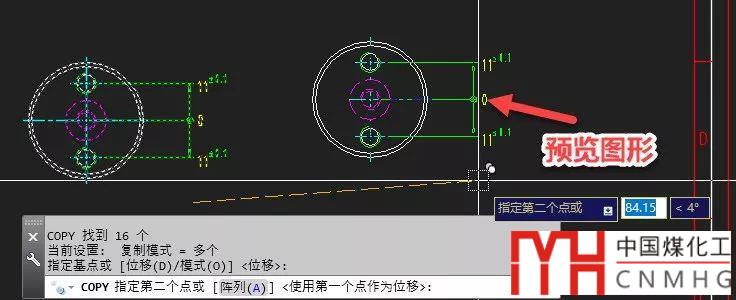 在CAD編輯圖形,比如移動和復(fù)制圖形時候,當(dāng)確定基點(diǎn)后,在移動光標(biāo)確定目標(biāo)點(diǎn)的時候,跟隨光標(biāo)會顯示被復(fù)制圖形的預(yù)覽效果,這樣可以幫助我們更好地定位圖形,如下圖所示。