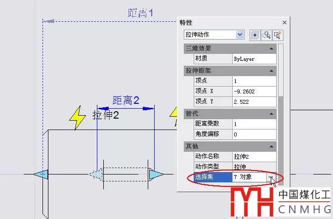 這次創(chuàng)建左拉伸動作時仍指定“距離2”為動作的參數,只是在選擇對象時將“距離1”也一起選中,如下圖所示。