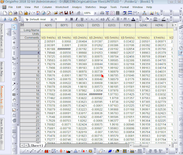 然鵝,實(shí)際測(cè)試時(shí),因不同的測(cè)試儀器而異,在不同的掃描速度(例如0.2,0.4,0.6,...,1 mV/s)下,得到的CV數(shù)據(jù)中數(shù)據(jù)行數(shù)是不一致的,這樣無(wú)法共用相同的電位數(shù)據(jù)列。