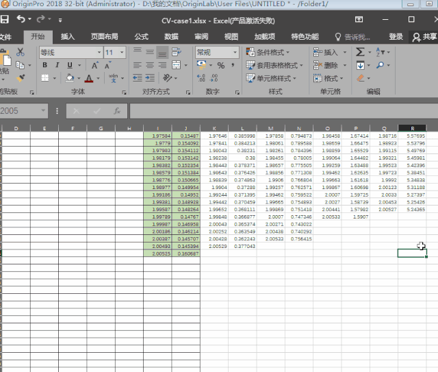 按下Ctrl不放,點(diǎn)擊每列電位數(shù)據(jù)的表頭,實(shí)現(xiàn)多選、挑選第一列公共電位和后續(xù)的每一組CV的電流數(shù)據(jù)列。Ctrl+C復(fù)制,然后在新的表格中按Ctrl+V粘貼即可。