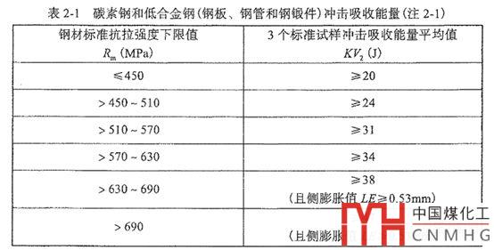但對于奧氏體不銹鋼的焊縫金屬,GB/T150.4第7.2.3條規(guī)定,“設(shè)計溫度低于-100℃且不低于-196℃的鉻鎳奧氏體不銹鋼制容器,在焊接工藝評定中,應(yīng)進行焊縫金屬的低溫夏比(V型缺口)沖擊試驗,在不高于設(shè)計溫度下的沖擊吸收功(KV2)不得小于31J” 。
