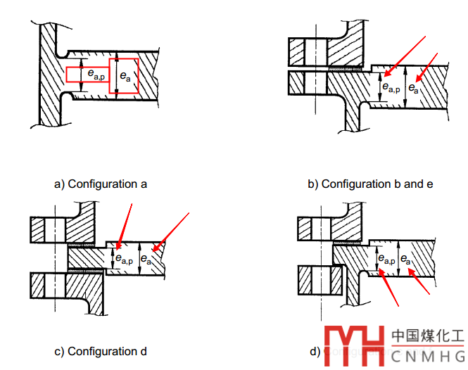 在EN 13445中,對(duì)于墊片,或者應(yīng)力泄放槽處的最小厚度用eap表示。
