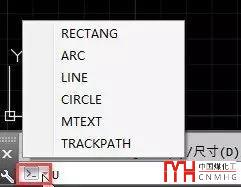 在AUTOCAD高版本增強(qiáng)了命令行功能,增加了一個(gè)最近使用功能列表的按鈕,單擊此按鈕可以顯示最近使用命令列表,可以在列表中直接選擇要重復(fù)執(zhí)行的功能,如下圖所示。