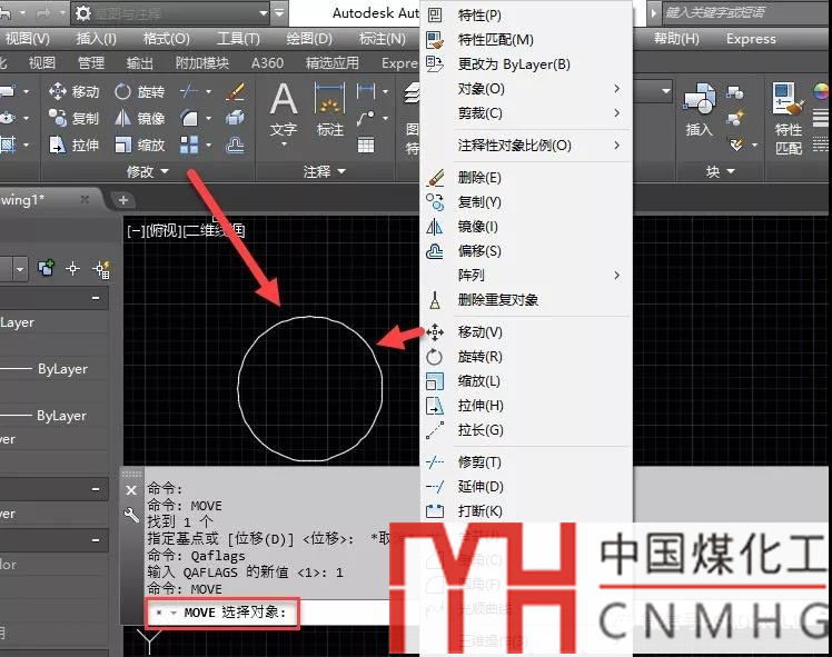 其實(shí)他說的復(fù)制和移動(dòng)常用命令可以,應(yīng)該是選擇對(duì)象后輸入的命令名或快捷鍵,如COPY(CO)或MOVE(M),如果輸入COPYCLIP命令應(yīng)該也是可以執(zhí)行的,但CTRL+C卻不行,另外先選擇對(duì)象后,從菜單、工具欄、RIBBON命令面板調(diào)用修改命令,也同樣會(huì)提示選擇對(duì)象,如下圖所示。