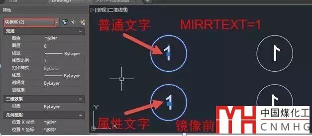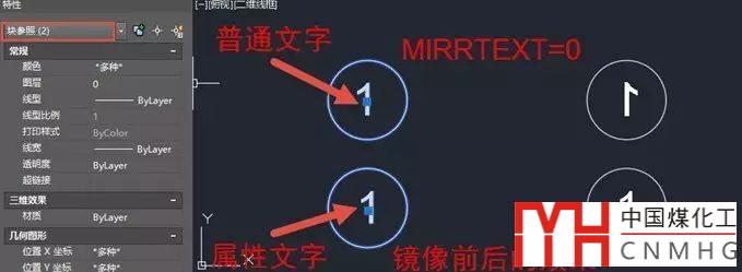 下面就簡單圖塊中使用普通文字和屬性文字鏡像效果的對比。