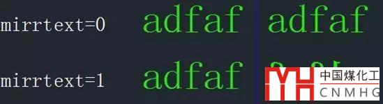 當mirrtext值為0時,可保持鏡像過來的字體不旋轉(zhuǎn),為1時,文字會按圖形進行鏡像,如下圖所示。