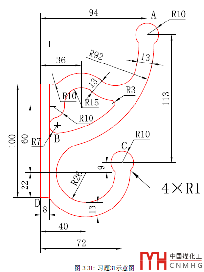 這張圖比較復(fù)雜,給出的條件也特別多,需要好先將這些條件看看,主要看哪些圓弧是需要依賴其他圖形才能繪制的,這樣可以確定繪制的先后順序。