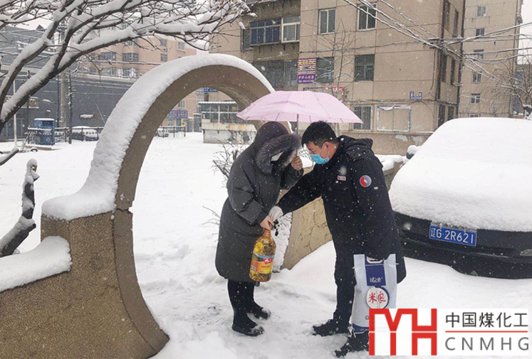 中國(guó)燃?xì)鈫T工頂著風(fēng)雨嚴(yán)寒為居民送氣