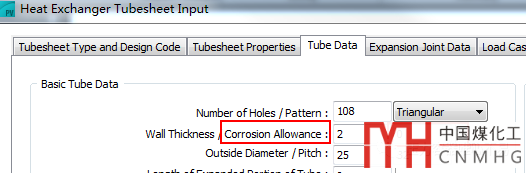 在ASME的計算軟件PVElite中也沒有換熱管的負(fù)偏差輸入項(xiàng),但是有換熱管腐蝕裕量輸入項(xiàng),不過一般都輸入為0。