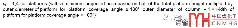 EN13445中有明確規(guī)定:計(jì)算載荷還有風(fēng)力系數(shù)Cf(對(duì)應(yīng)國(guó)內(nèi)體型系數(shù)),結(jié)構(gòu)系數(shù)Cs×Cd(大于等于1)等。平臺(tái)包角分大于等于100°和小于100°,具體規(guī)定見(jiàn)下方截圖。因?yàn)闃?biāo)準(zhǔn)中已經(jīng)規(guī)定的相當(dāng)明確軟件就不截圖了。
