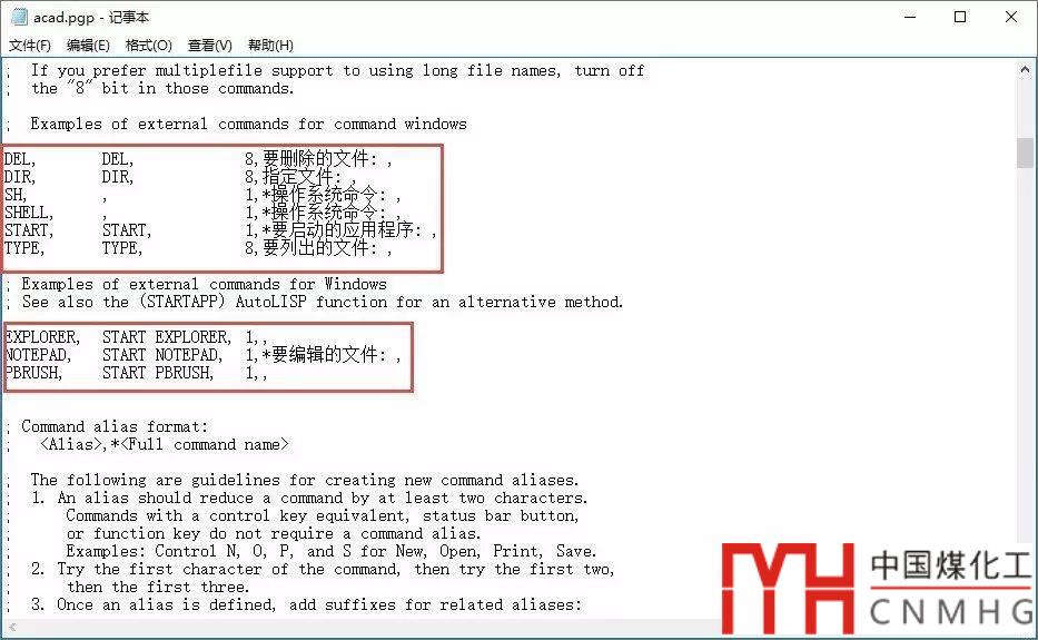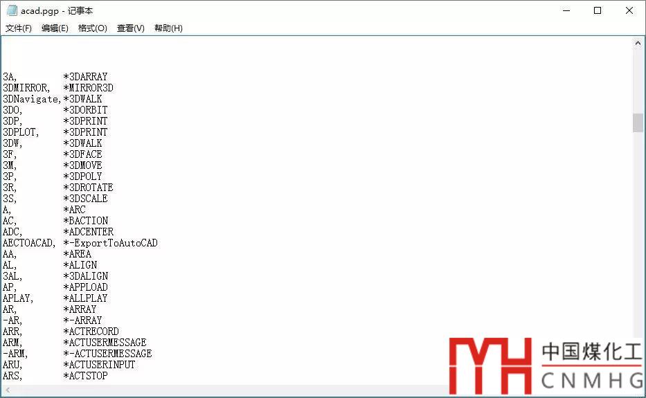 CAD中別名是由一個(gè)特殊的文本文件定義的,別名文件的擴(kuò)展名為*.PGP(AutoCAD 為acad.pgp、浩辰CAD8為gcad.pgp)。PGP文件是一個(gè)純文本文件,我們找到當(dāng)前用戶(hù)的APPDATA文件夾下CAD支持路徑下的PGP文件后,可以直接用記事本打開(kāi)進(jìn)行編輯。