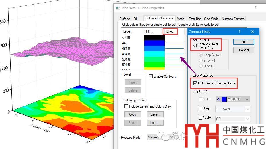 Line:Show major,勾選Link Line to Colormap Color