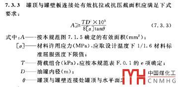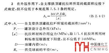 (2)罐頂受內(nèi)壓時,抗拉面積A應依照附錄A.1.2條的要求按式A.4.1校核。