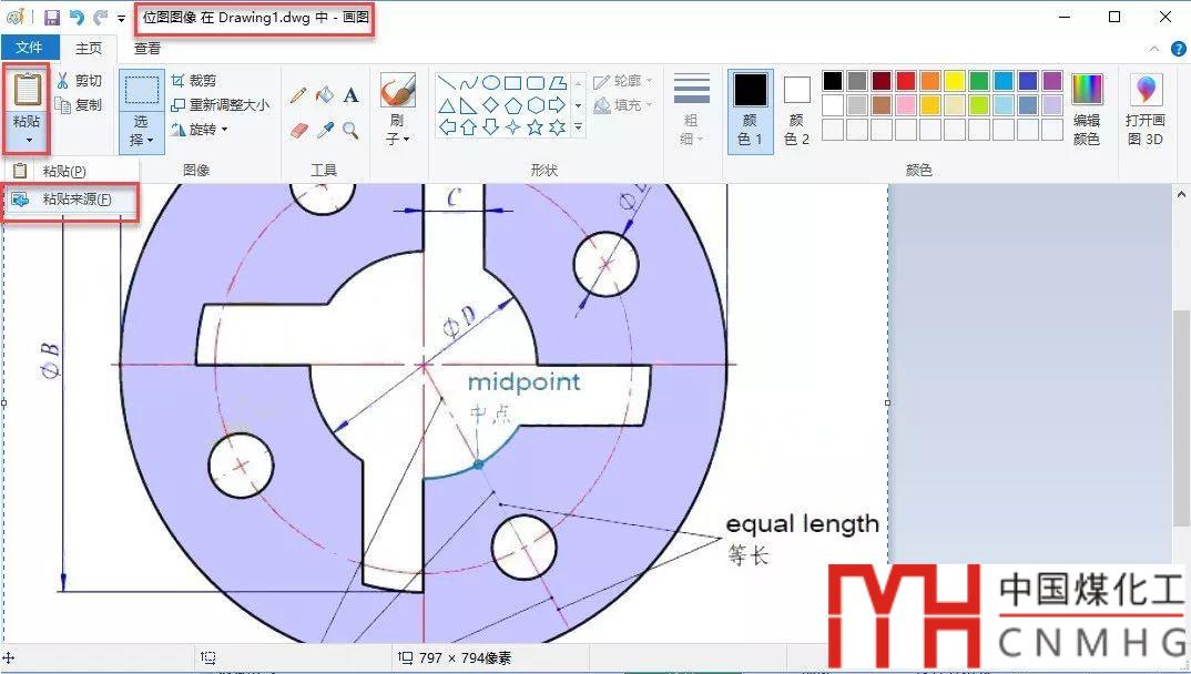 如果我們想用畫圖來插入OLE圖片,可以在對象類型中選擇“畫筆圖像”或“位圖圖像”,然后單擊“確定”按鈕,CAD會自動啟動 “畫圖”軟件。在畫圖軟件的菜單中選擇:編輯>粘貼來源,選擇需要插入的圖片并單擊“打開”,用畫圖程序?qū)D片打開,如下圖所示。