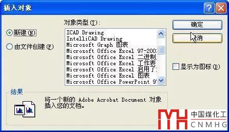 從對象類型列表中,可以看到本機安裝的各種軟件,如WORD、EXCEL、POWERPOINT等等,也就是說這些軟件中的文檔或圖形都可以以O(shè)LE的方式插入,如下圖所示。