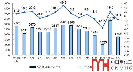 據(jù)海關(guān)總署公布數(shù)據(jù),1-2月進(jìn)口煤及褐煤合計(jì)5114萬(wàn)噸,同比增加5.0%。其中,1月份進(jìn)口煤炭3350萬(wàn)噸,同比增長(zhǎng)19.5%;2月份進(jìn)口1764萬(wàn)噸,同比下降15.6%,環(huán)比大幅下滑近一半,這主要由于國(guó)家采取了加強(qiáng)進(jìn)口煤質(zhì)管理、延長(zhǎng)澳洲焦煤通關(guān)時(shí)間等一系列調(diào)控措施。展望2019年,隨著國(guó)內(nèi)煤炭行業(yè)供需矛盾弱化,價(jià)格中樞回落,進(jìn)口煤量預(yù)計(jì)呈逐步下降趨勢(shì),但行業(yè)供給端韌性仍然偏強(qiáng)。