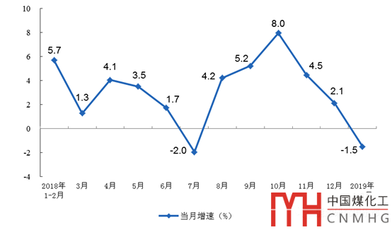 2019年1-2月份,全國(guó)規(guī)模以上工業(yè)增加值同比實(shí)際增長(zhǎng)5.3%。工業(yè)生產(chǎn)運(yùn)行總體平穩(wěn)、穩(wěn)中有進(jìn),多數(shù)行業(yè)和產(chǎn)品保持增長(zhǎng)態(tài)勢(shì),新動(dòng)能和消費(fèi)品制造業(yè)增長(zhǎng)較快,私營(yíng)企業(yè)增長(zhǎng)加快,工業(yè)品出口平穩(wěn)增長(zhǎng)。1-2月份,全國(guó)規(guī)模以上工業(yè)企業(yè)利潤(rùn)總額同比下降14.0%。經(jīng)測(cè)算,剔除春節(jié)因素,規(guī)模以上工業(yè)企業(yè)利潤(rùn)總額與上年同期持平略降,其中煤炭開(kāi)采和洗選業(yè)下降23.2%。1-2月份,規(guī)模以上工業(yè)原煤生產(chǎn)同比下降,原油、電力生產(chǎn)增速放緩,天然氣生產(chǎn)保持較快增長(zhǎng)。