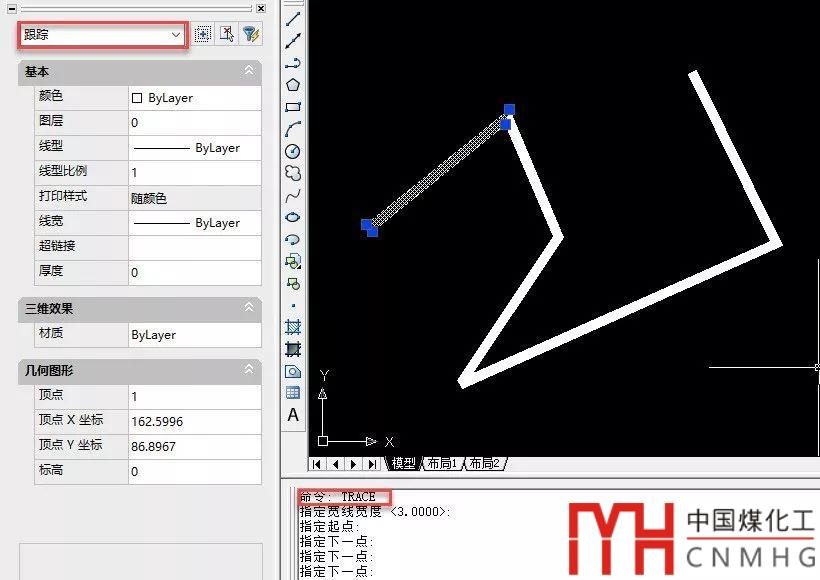 跟蹤(TRACE)是低版本支持的一種對象,用于繪制寬線,比如在AUTOCAD2007里輸入TRACE命令后回車,會提示輸入寬度,然后就可以在圖面上繪制連續(xù)的寬線,如下圖所示。