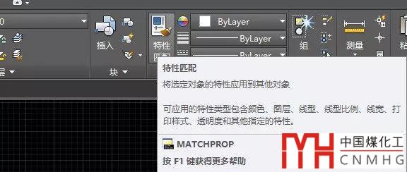 特性匹配從字面上講很簡(jiǎn)單,就是將選定對(duì)象的特性應(yīng)用到其他對(duì)象。輸入命令matchprop (MA)或單擊工具欄、命令面板上的特性匹配按鈕,如下圖所示。