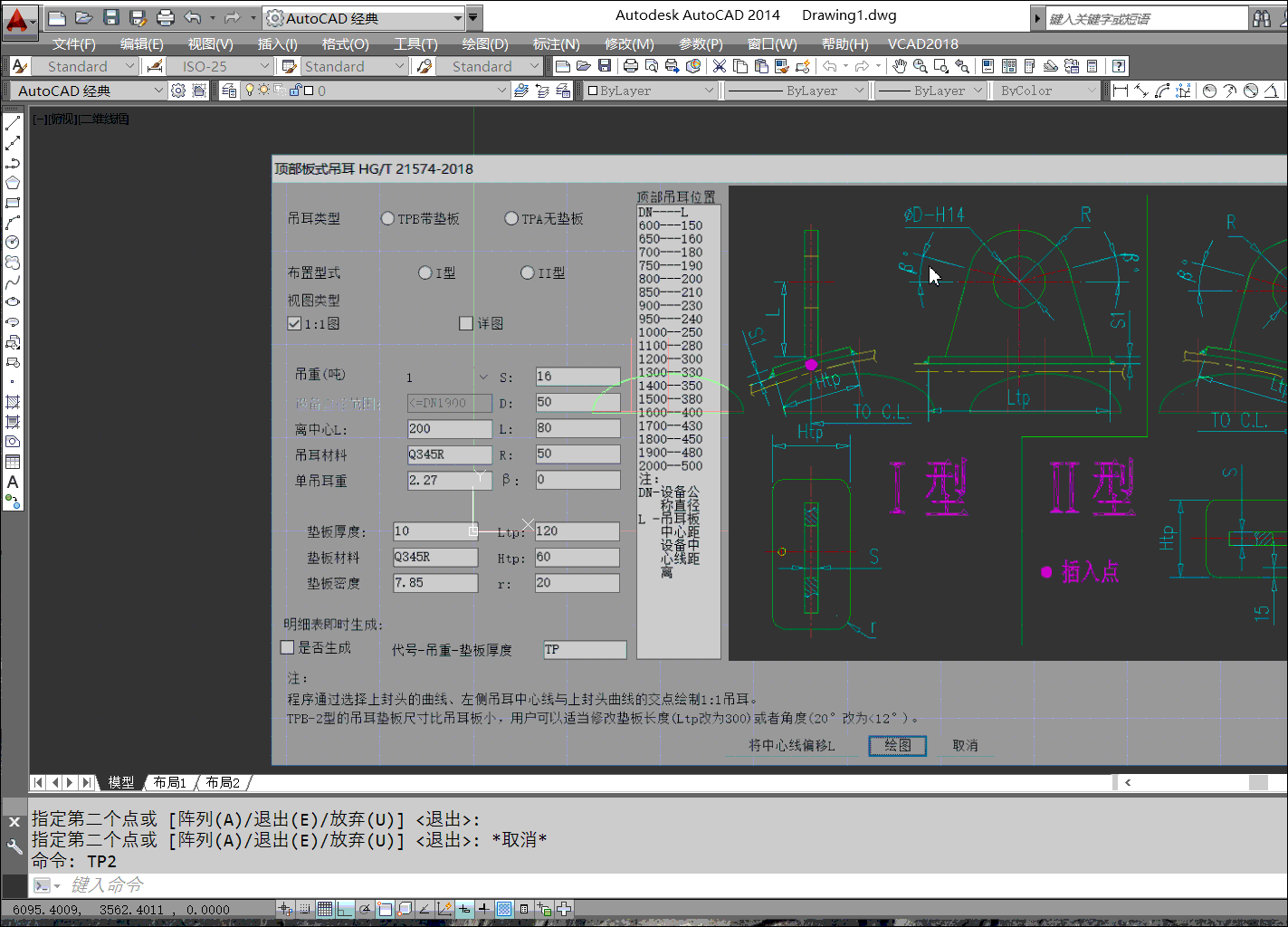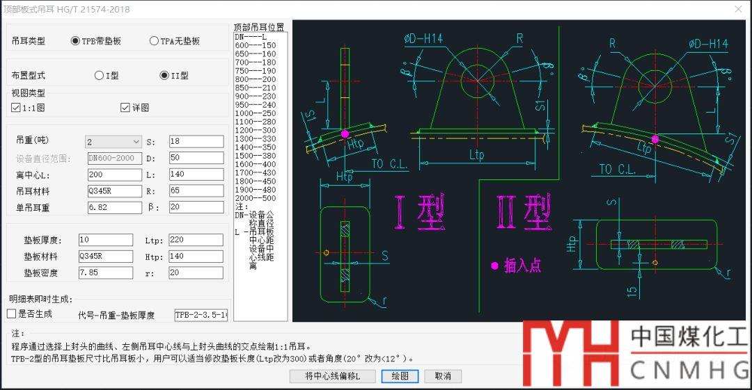 b)TPB-2的吊耳,I型和II型的尺寸不匹配,吊耳墊板比吊耳板尺寸小,用戶需要自己修改尺寸。