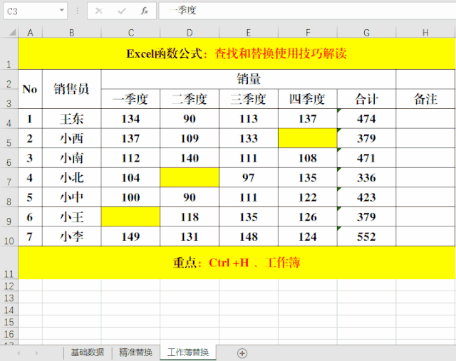 目的:將工作簿中的“一季度”替換為“第一季度”。