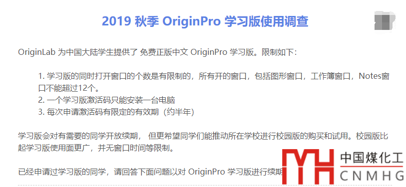我們會為填寫好問卷的同學處理學習版激活碼的續(xù)期,填好問卷的同學請在 10月 31 日后安裝最新版并在 OriginPro 幫助菜單下點擊激活按鈕重新激活您的 OriginPro