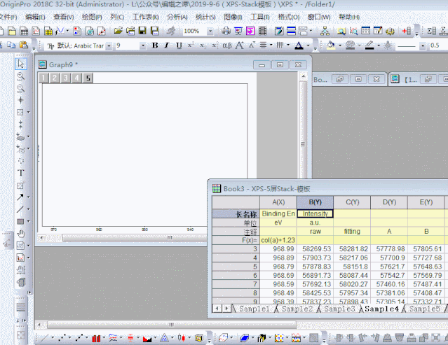 本文非常詳細地演示了XPS-5堆stack圖的繪制過程,略顯啰嗦,目的是為了充分展示繪圖過程,對初學者能快速掌握Origin繪圖技巧非常有幫助。