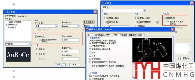 CAD高版本中,我們在創(chuàng)建文字樣式(style)、標注樣式(dimstyle)、圖塊(block)、填充(hatch)時,在對話框中都可以看到注釋性(Annotative)的選項,在國產的浩辰CAD最新版本中也增加了類似的選項,如下圖所示。
