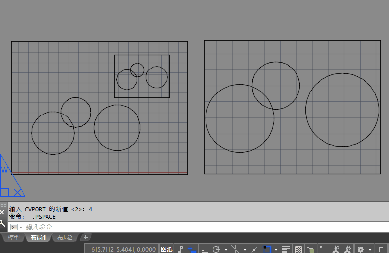 這個變量是CVPORT,C表示當(dāng)前CURRENT,VPORT表示視口,可以通過編號來設(shè)置當(dāng)前激活的視口。比如一個布局中有兩個視口,先激活一個視口,然后輸入CVPORT,回車,輸入2,回車,就會激活其中一個視口;再輸入此命令,回車,輸入3,回車,就會激活另外一個視口。如果布局中有多個視口,這些視口也是依次編號的,下面我們來看看操作的效果。