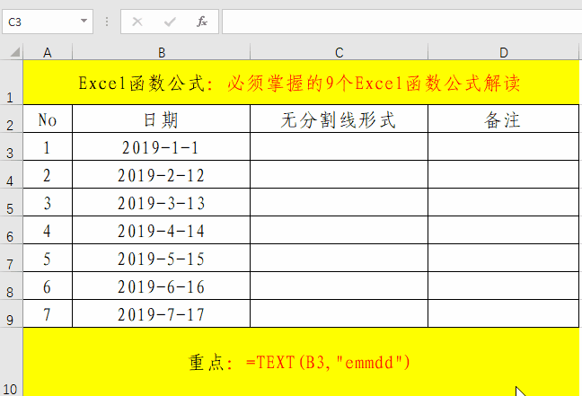 在目標(biāo)單元格中輸入公式:=TEXT(B3,"emmdd")。