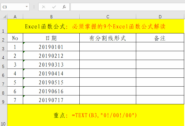在目標(biāo)單元格中輸入公式:=TEXT(B3,"0!/00!/00")。