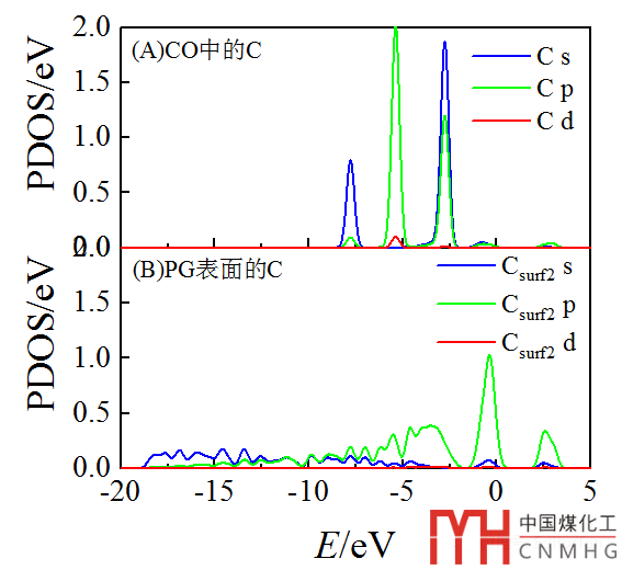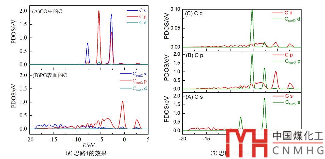 對比兩種思路繪圖(圖9)的效果發(fā)現(xiàn),按照吸附前后對比不同的軌道數(shù)據(jù),顯然比較對象(s,p,d軌道)各不相同,不具有可比性(圖9A)。而分別對比每個軌道在吸附前后的情況(圖9B),是最科學(xué)的。
