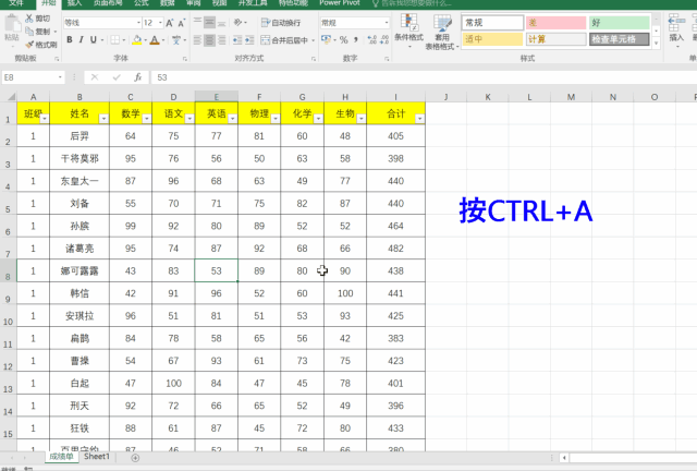 需要選中表格中所有的數(shù)據(jù)的時候,只需要選中表格中任意的一個單元格,然后按CTRL+A,便選中了。