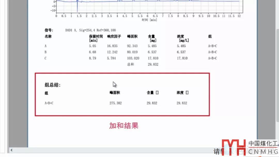 調(diào)用“進(jìn)樣結(jié)果”窗口。在進(jìn)樣結(jié)果表中就可以看到ABC加和后的定量結(jié)果。