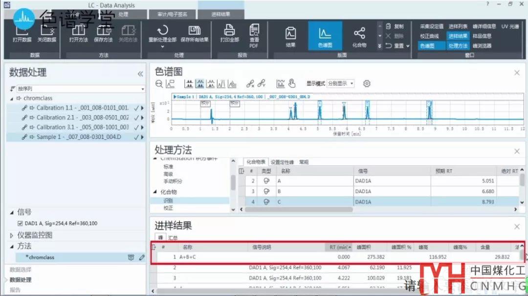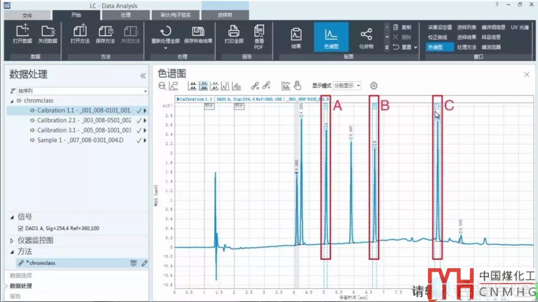 我們已經(jīng)在相關(guān)聯(lián)的chromclass方法下建立了校正曲線,該方法下有abc三個(gè)組分的校正曲線。
