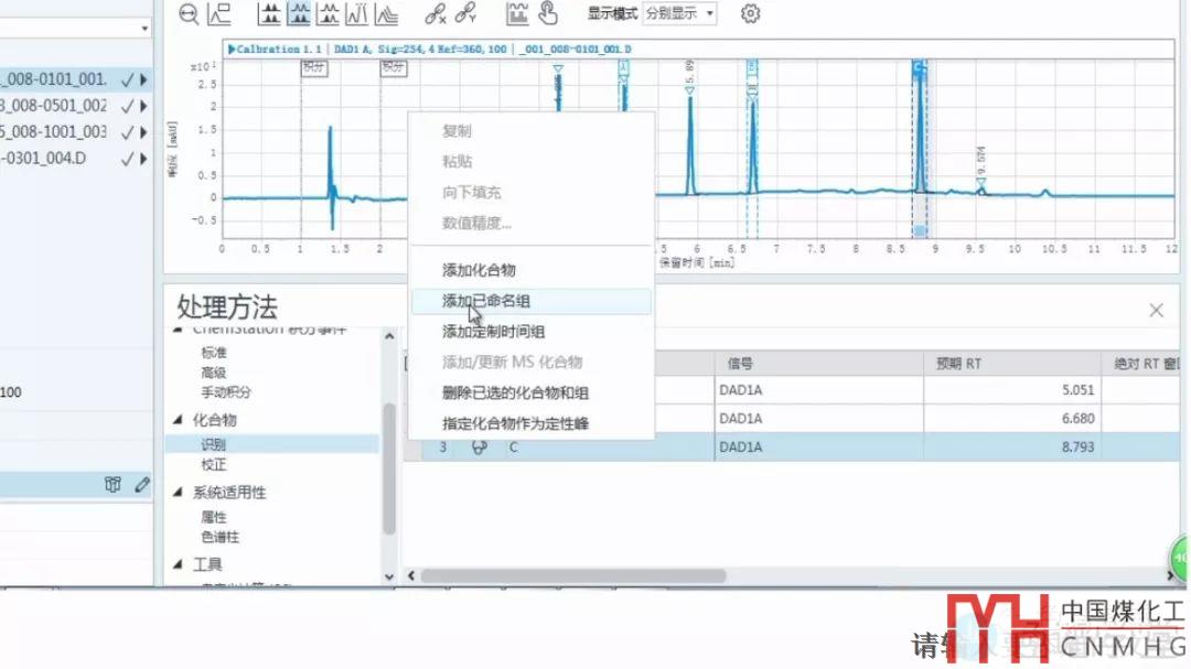 首先來到處理方法——化合物——識(shí)別——化合物表中點(diǎn)擊鼠標(biāo)右鍵,選擇“添加已命名組”。