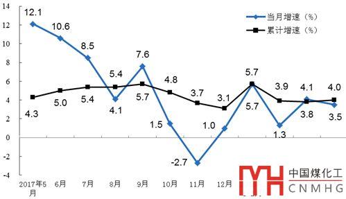 5月份全國原煤產量2.97億噸,同比增長3.5%。1~5月份,累計原煤產量14.0億噸,同比增長4.0%。