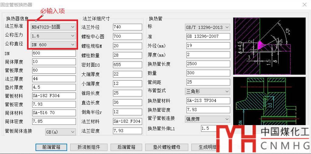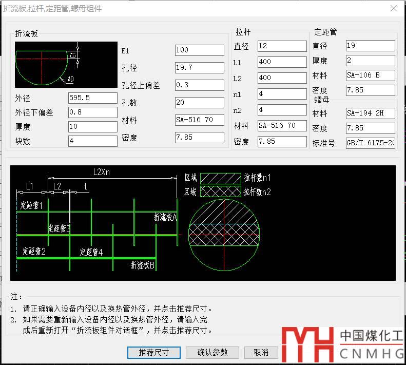 折流板,拉桿,定距管,螺母組件,點擊推薦尺寸后,其公差,直徑等均不用輸入。