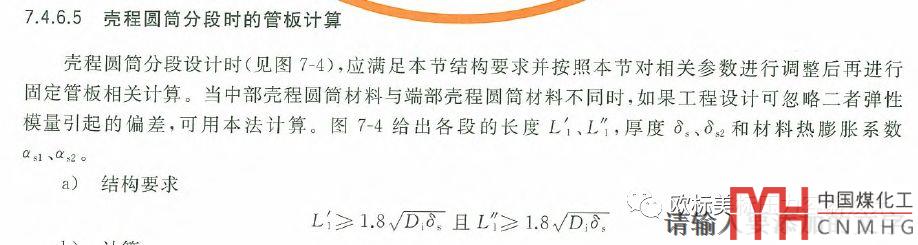 和管板連接的筒體長度無論是ASME Ⅷ-1/2,EN 13445或GB/T 151都有明確規(guī)定,只是長短稍有差別。ASME和GB/T 151的長度要求是1.8倍,EN 13445要求是1.4倍。