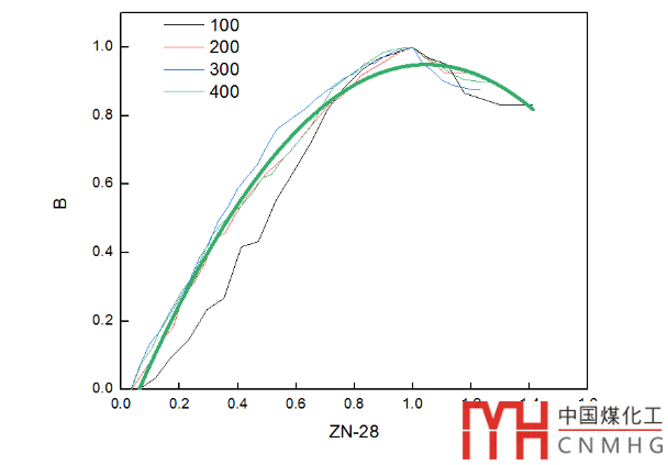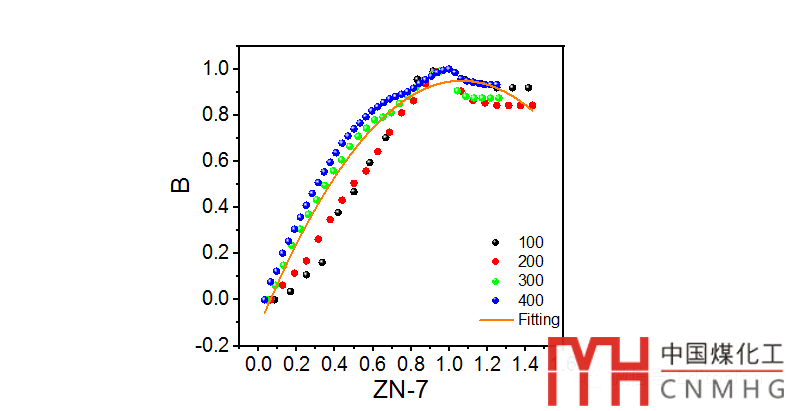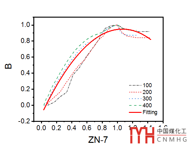 上圖的繪制中,選擇Line+Scatter模式,解除Group,逐條設(shè)置,100~400的4條曲線中,將Line粗細(xì)設(shè)置為0(即不顯示線條);擬合曲線中Symbol大小設(shè)置為0(即不顯示散點(diǎn))。