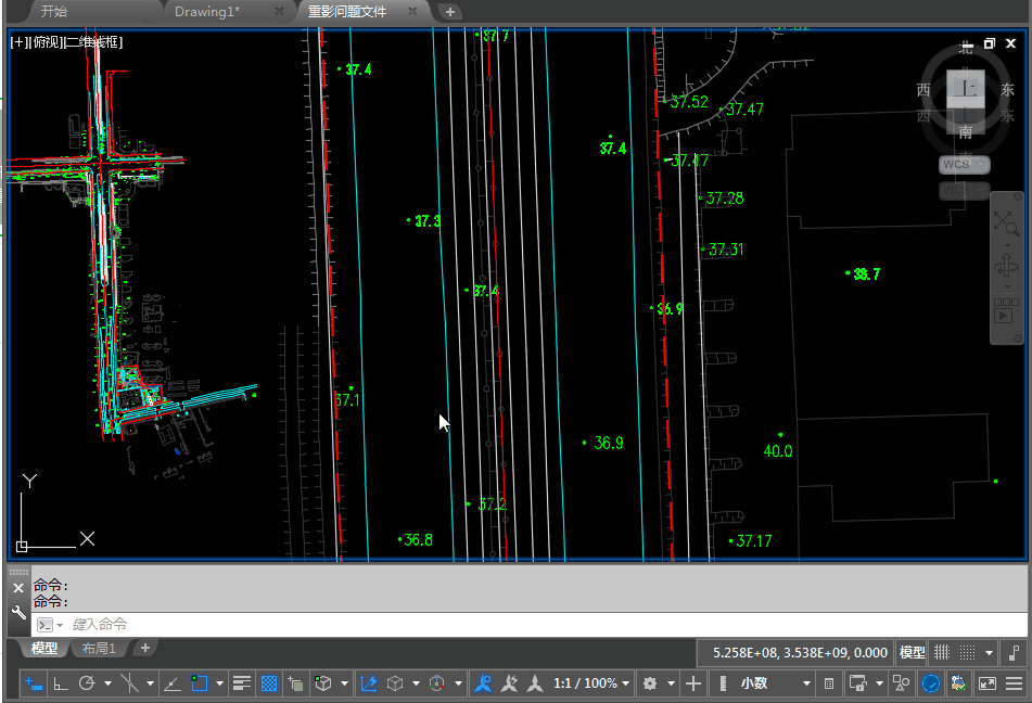 已經(jīng)遇到過幾次類似的問題了,別人發(fā)過來的圖紙,打開后圖紙顯示正常,但利用滾輪縮放平移圖紙圖紙沒有反應(yīng),或者縮放的時候可以看到圖形縮放,但還有一份不動的圖形,前幾天就有網(wǎng)友發(fā)過來一張這樣的圖紙,如下圖所示。