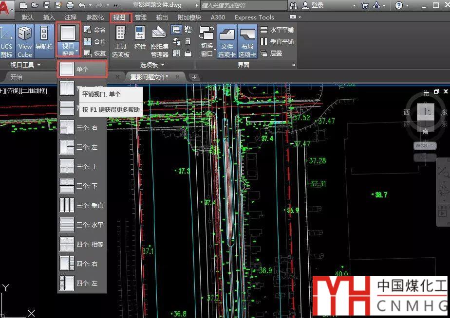 在高版本RIBBON界面的命令面板中,可以到視圖選項卡中點開“視口配置”的下拉列表,選擇單個即可,如下圖所示。