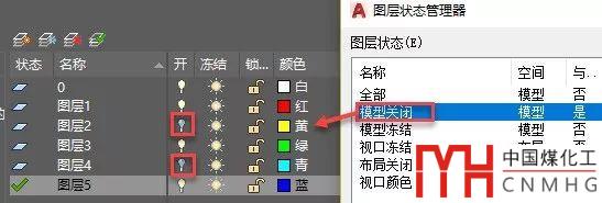 1、模型空間關(guān)閉圖層的圖層狀態(tài)