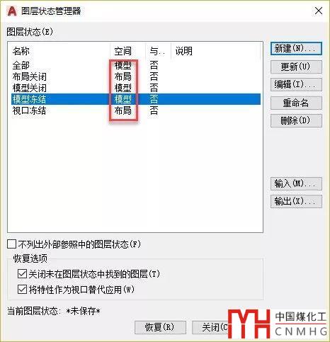 其實(shí)這個模型和布局好理解,模型就是在模型空間里保存的圖層狀態(tài),布局就是在布局空間保存的圖層狀態(tài)。