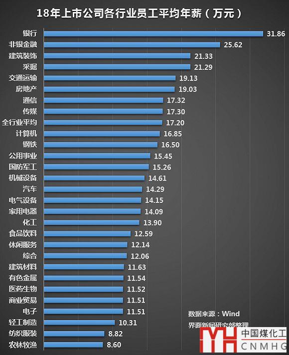 從這個榜單來看,天然氣行業(yè)上游企業(yè)所屬的采掘業(yè)排名靠前,人均年薪21.29萬元,下游企業(yè)所屬的公共事業(yè)排名居中,人均年薪15.45萬元。